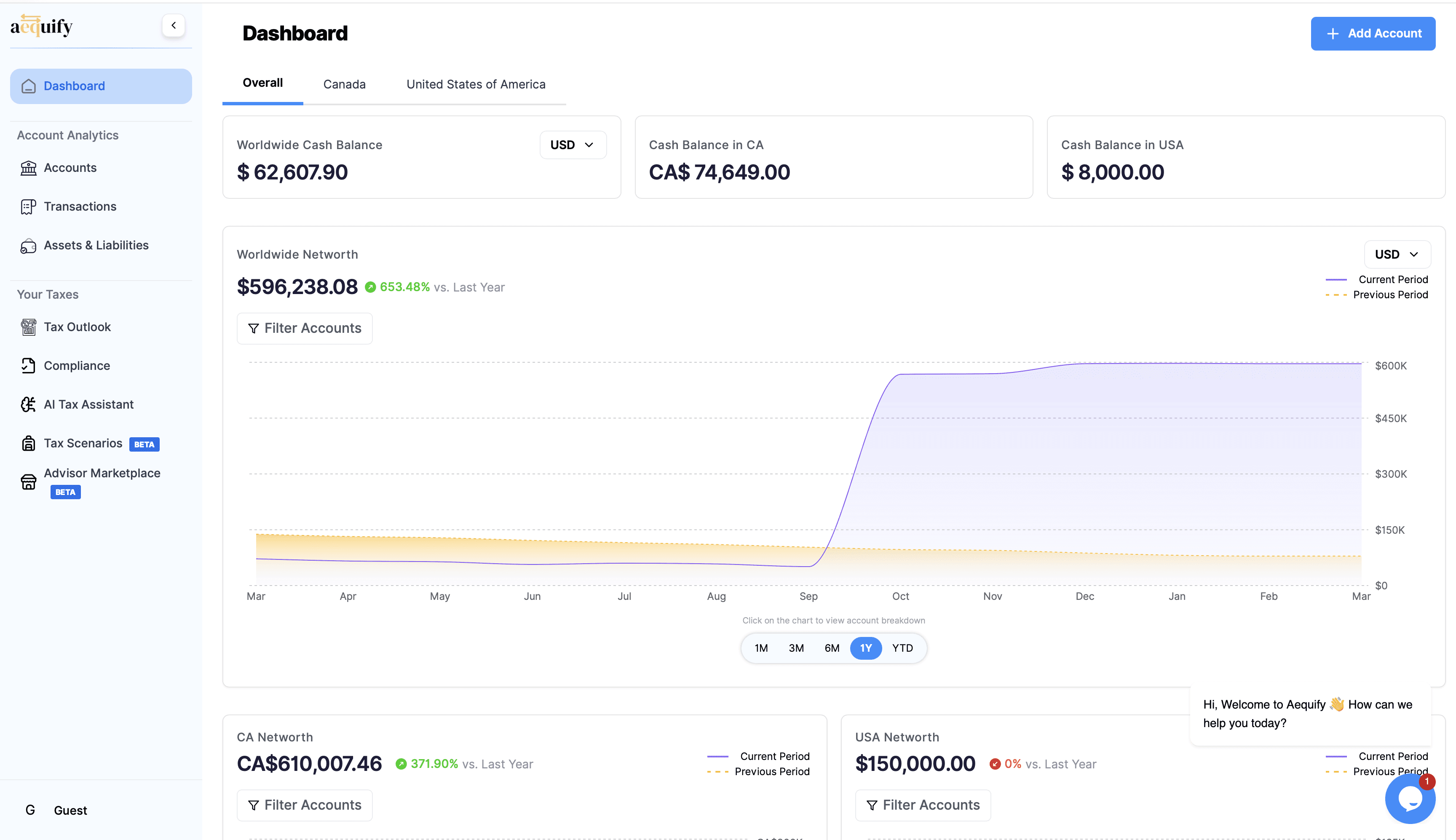 Track worldwide net worth, stay on top of tax compliance like FBAR and FATCA, and share tax-ready data with your advisor with in single click - all on a single platform