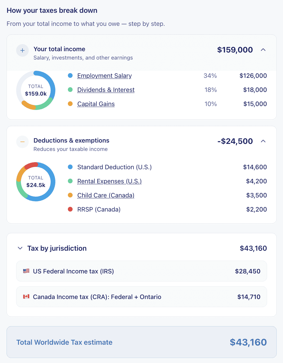 Get an estimated view across countries and flag common issues like double-tax risk and foreign tax credit gaps.
